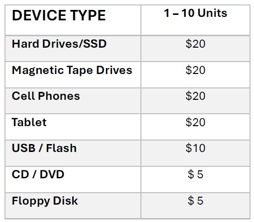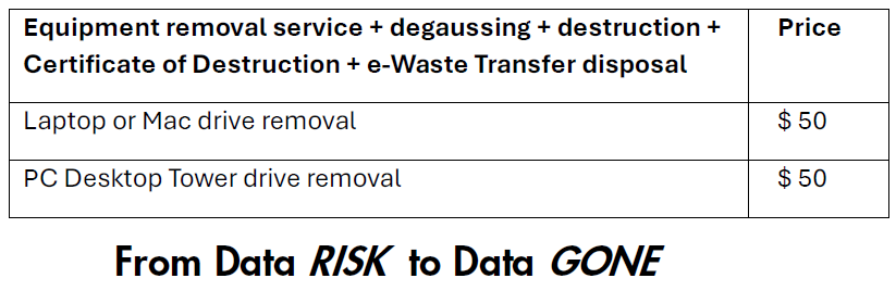 Free “Watch-it-Go” service Witness your secure device destruction. Appointment required.